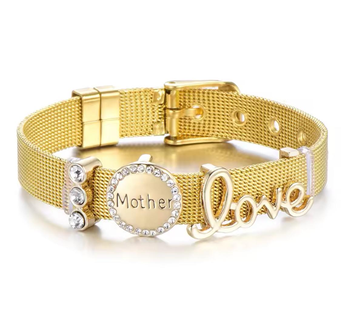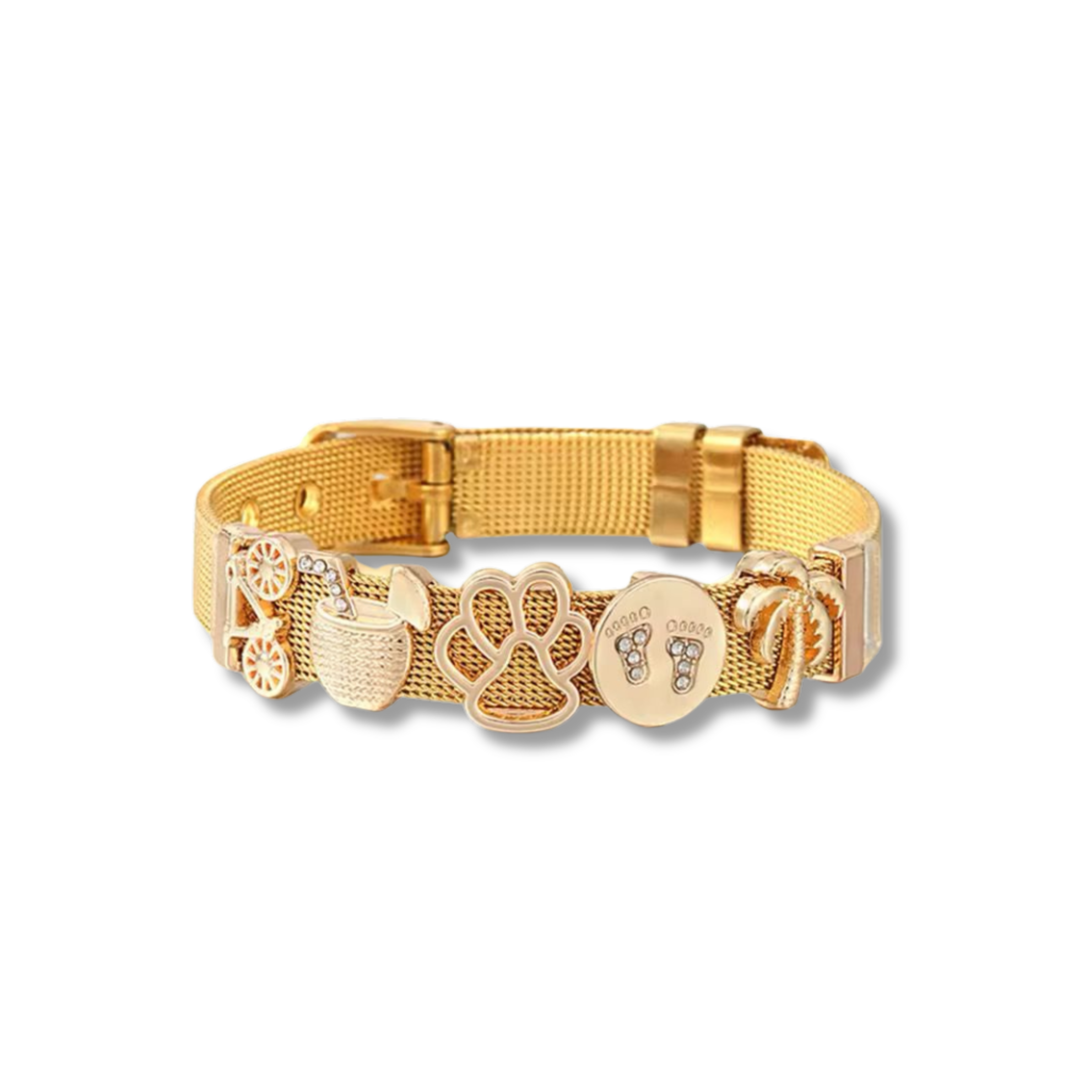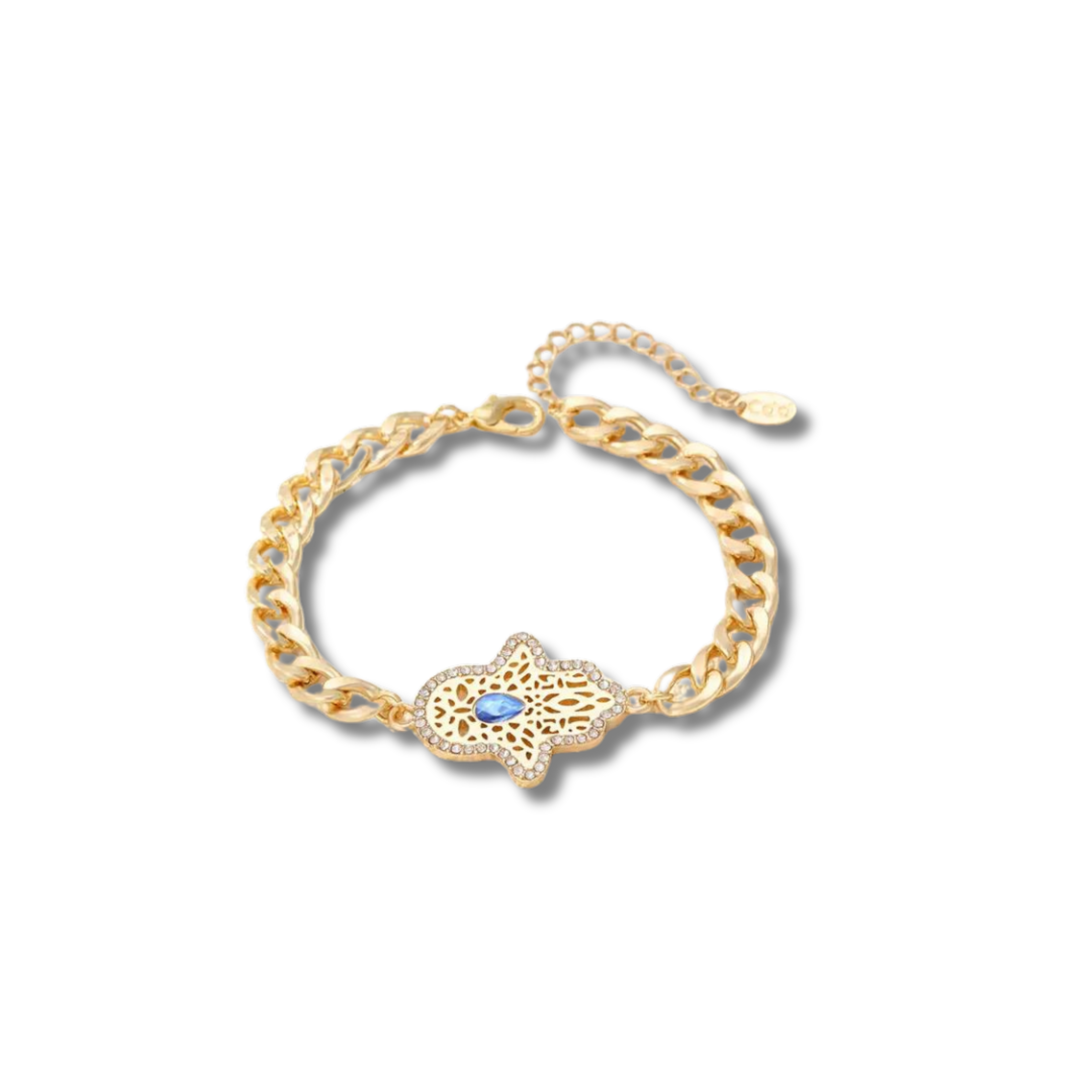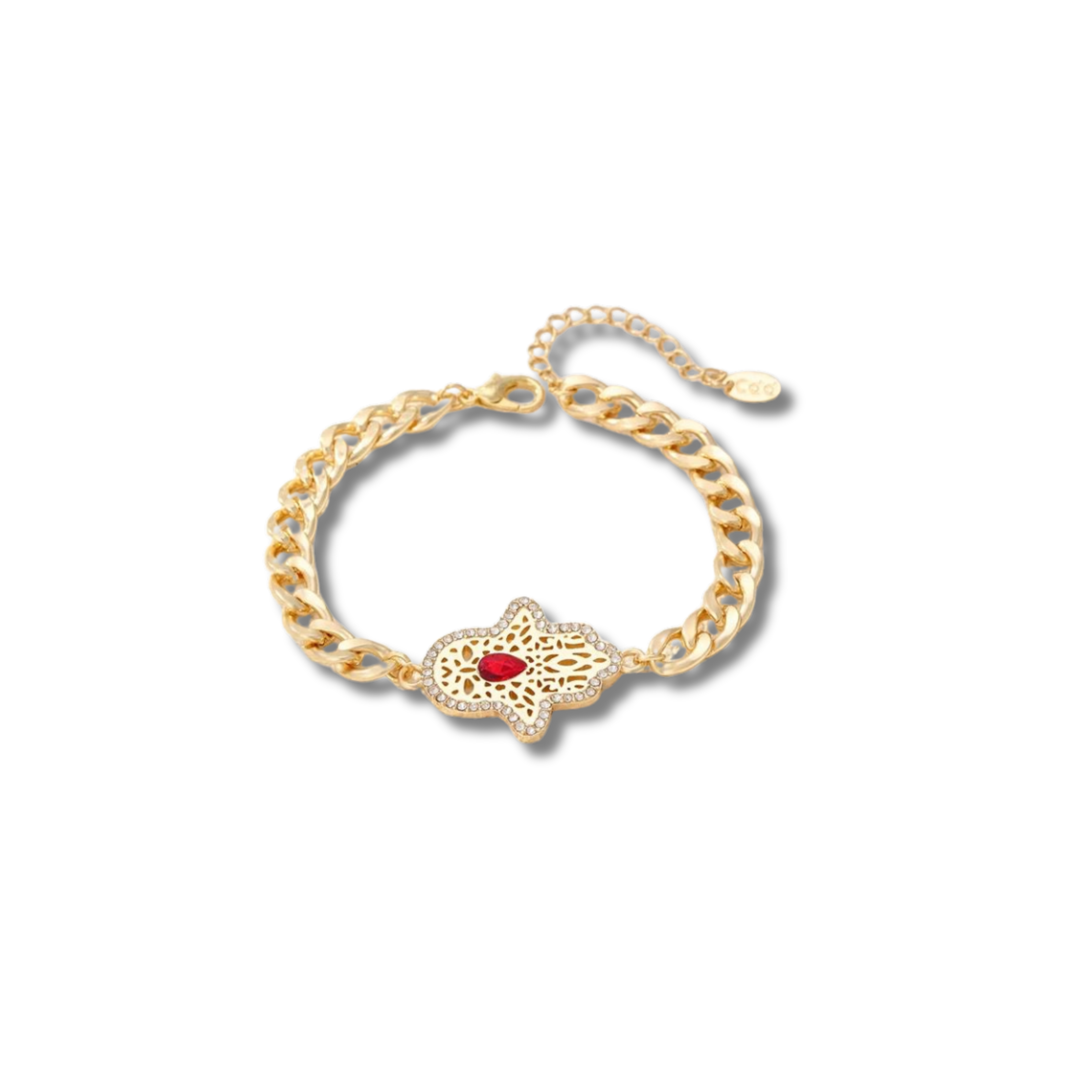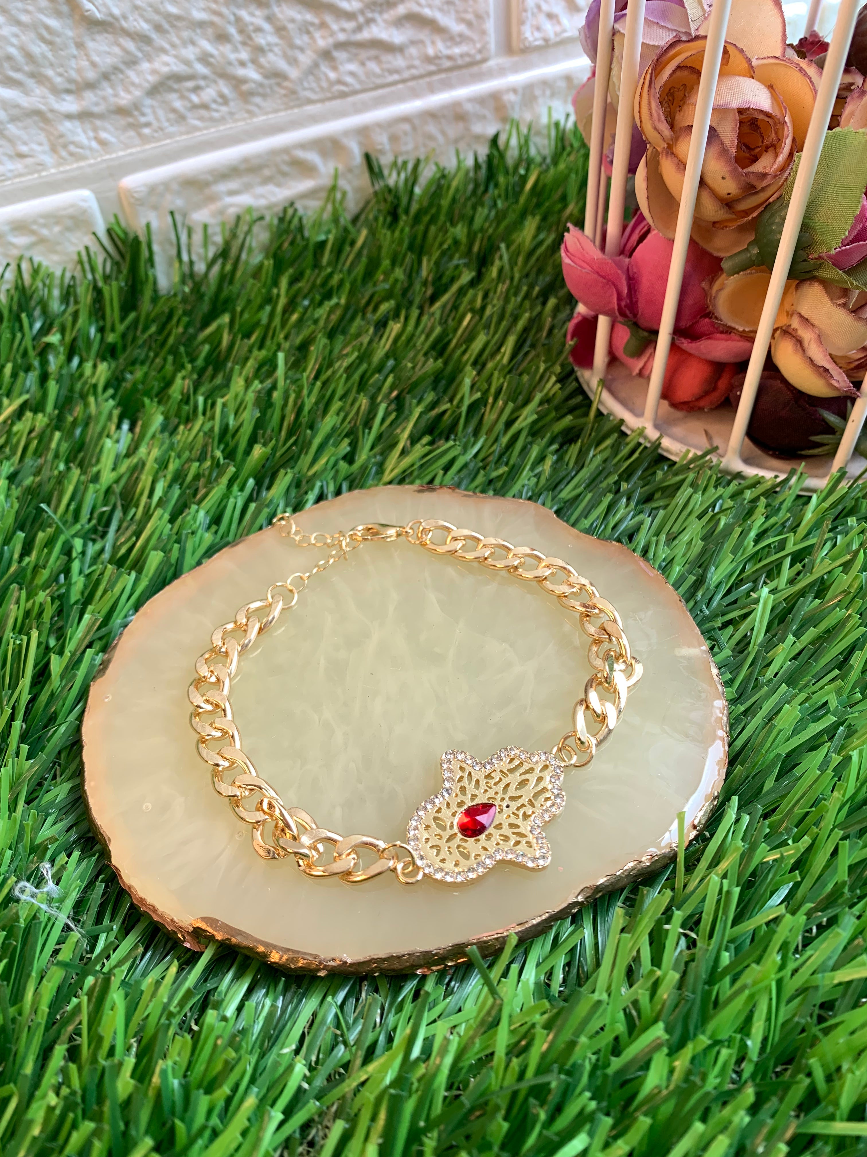 Red Stud Centred Hamsa Harmony Golden Bracelet