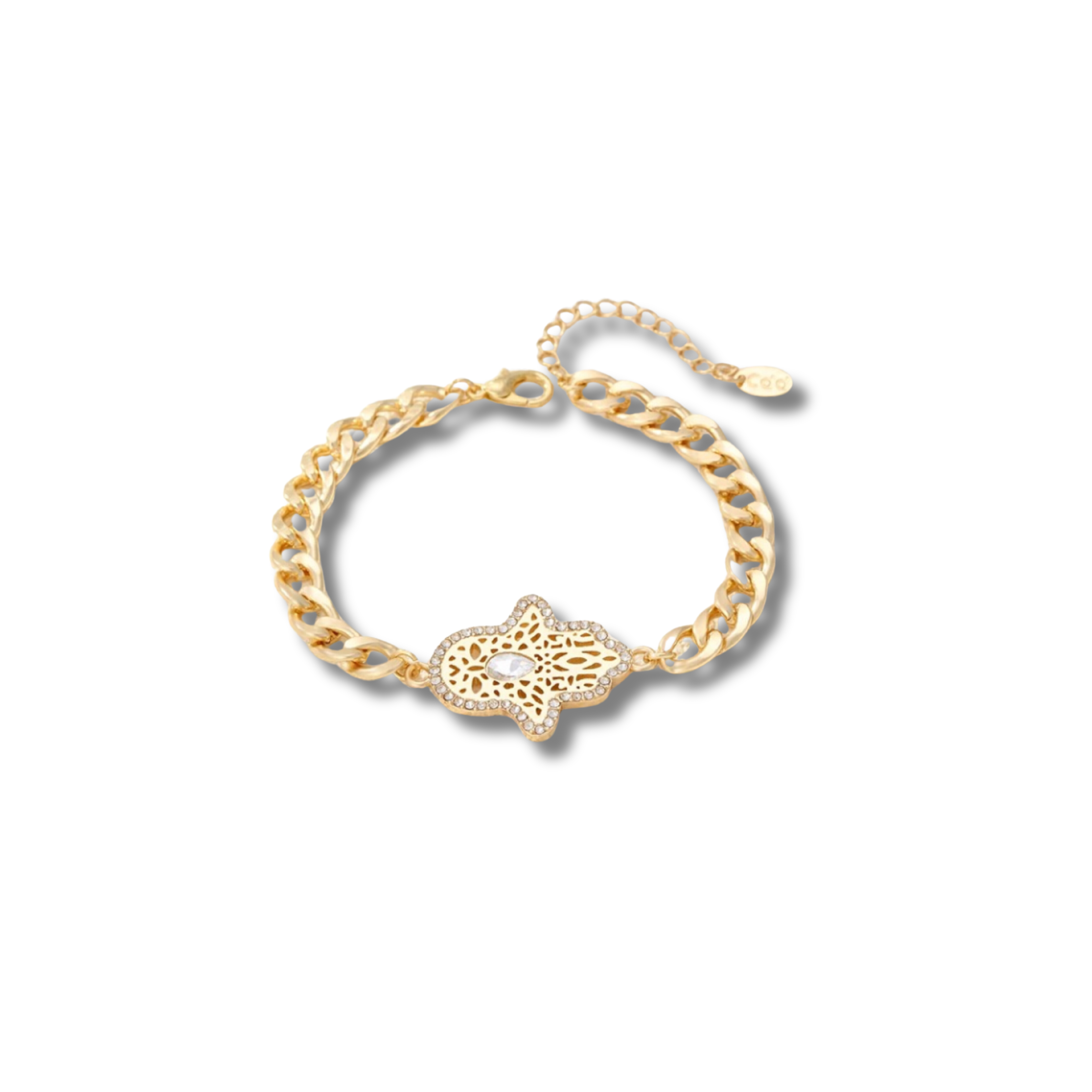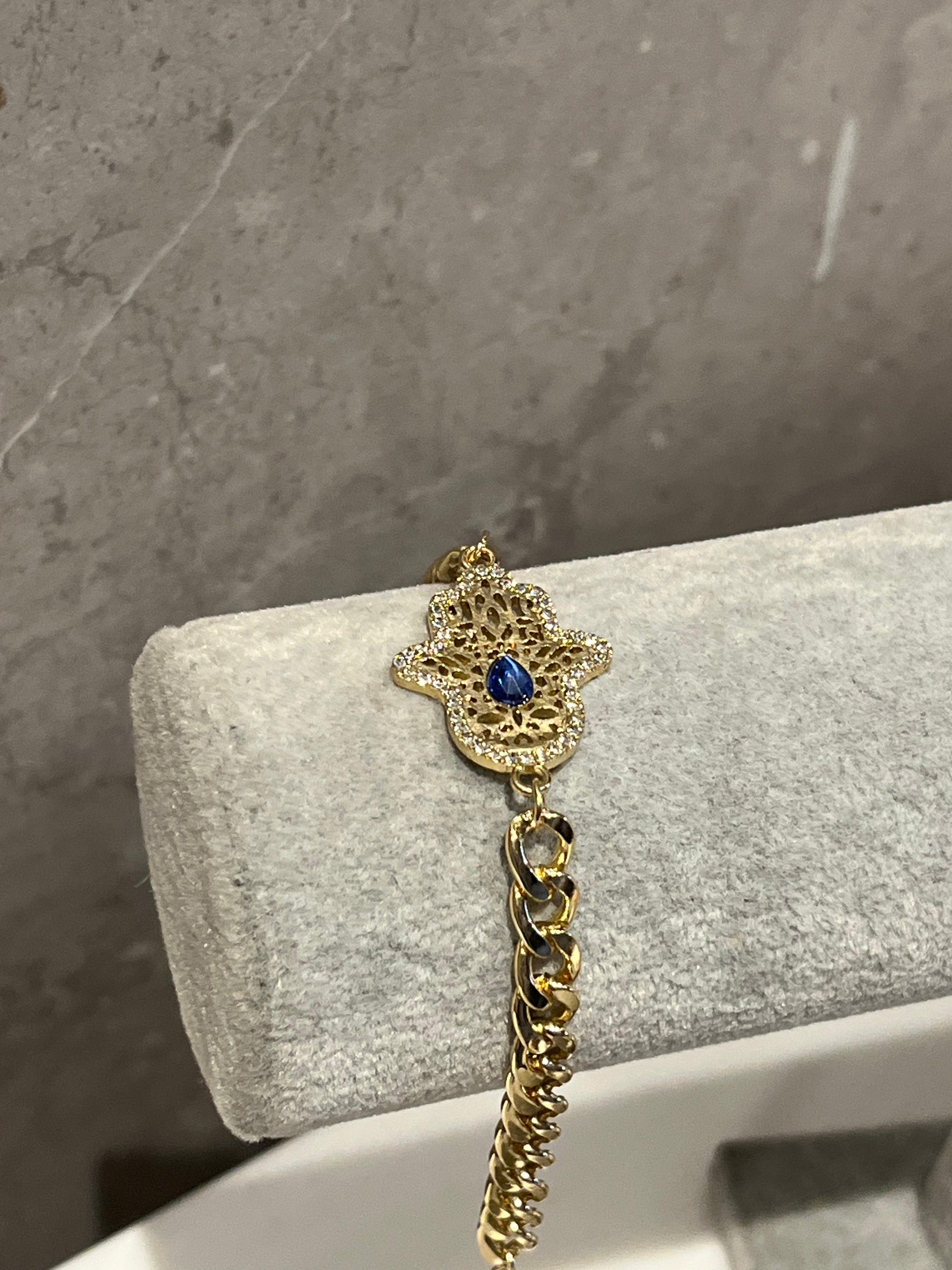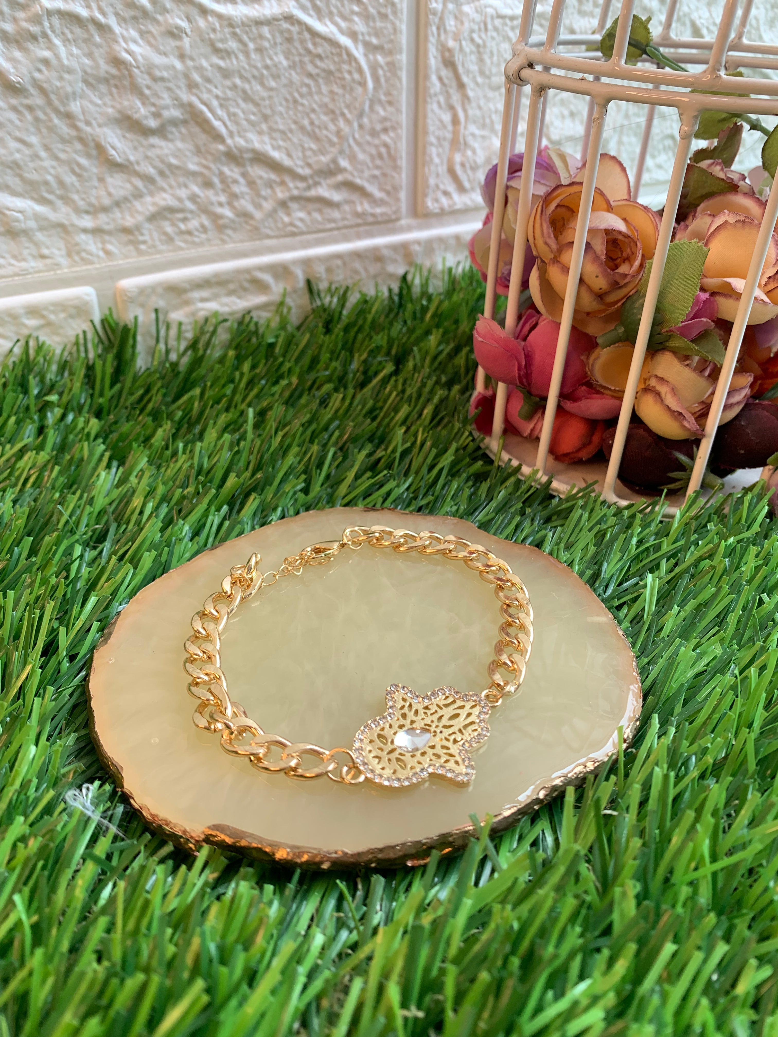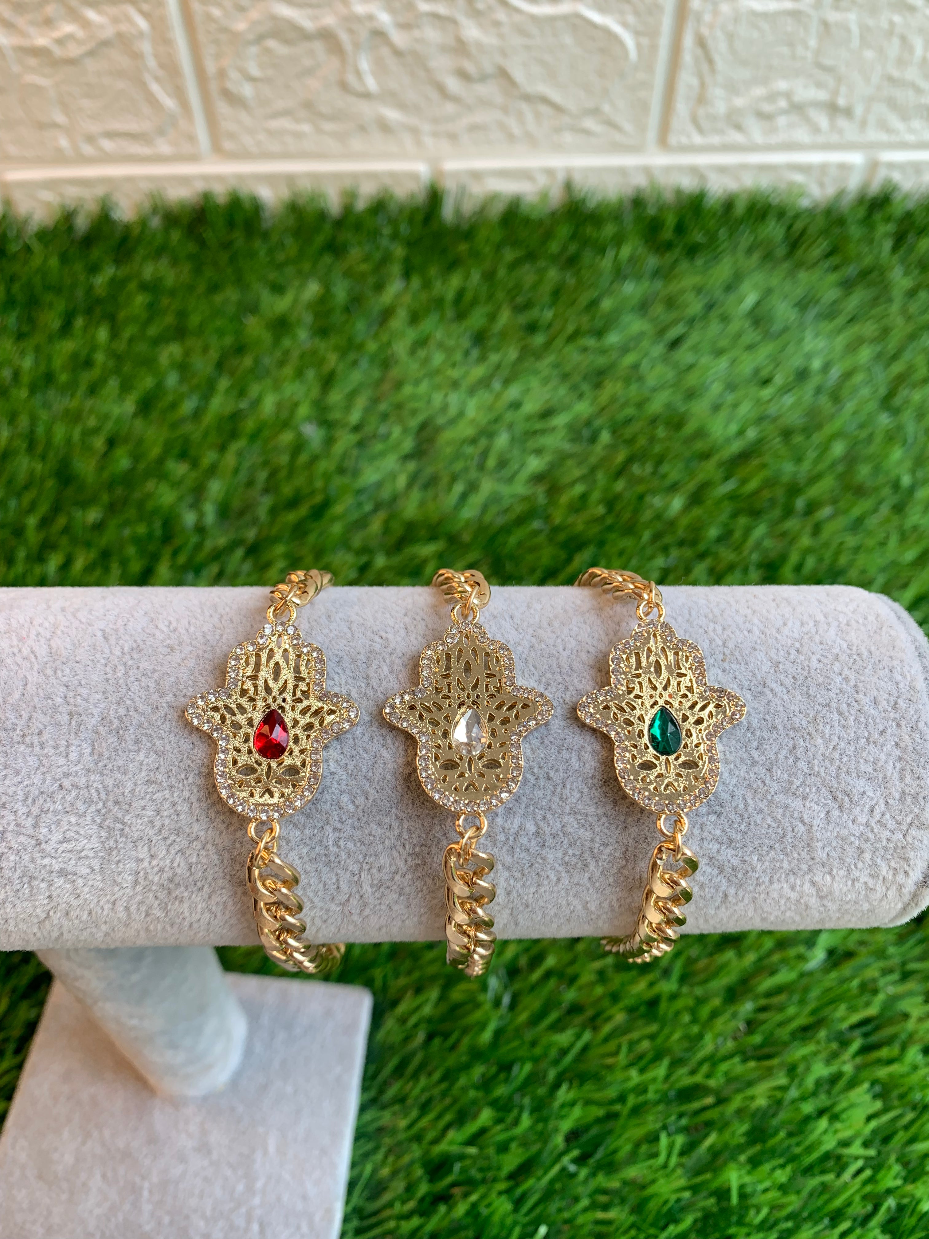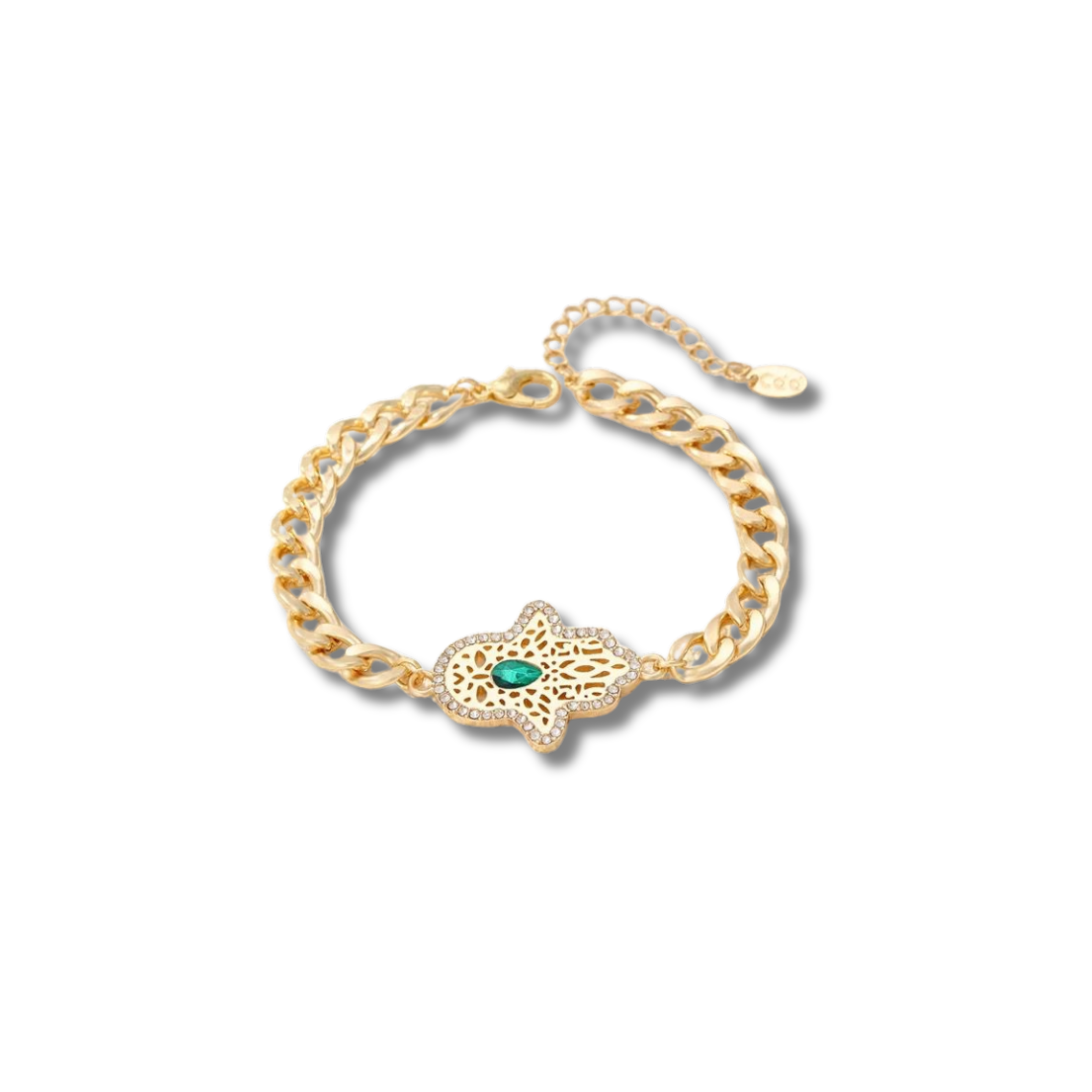 Green Stud Centred Hamsa Harmony Golden Bracelet