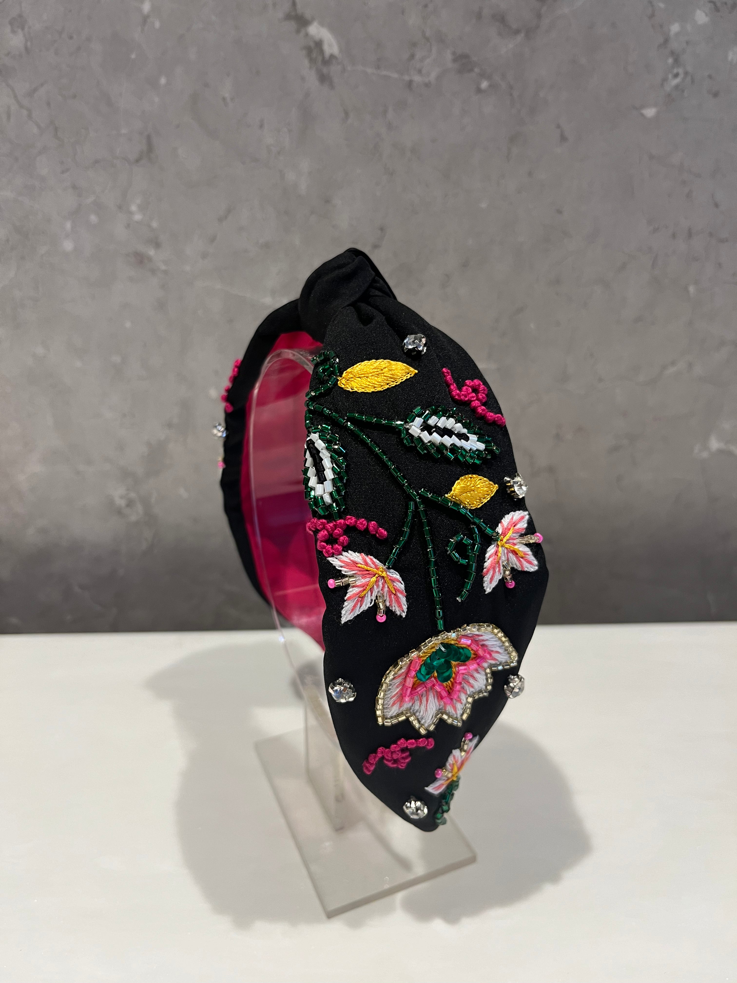Flowery Black Turban Hairband