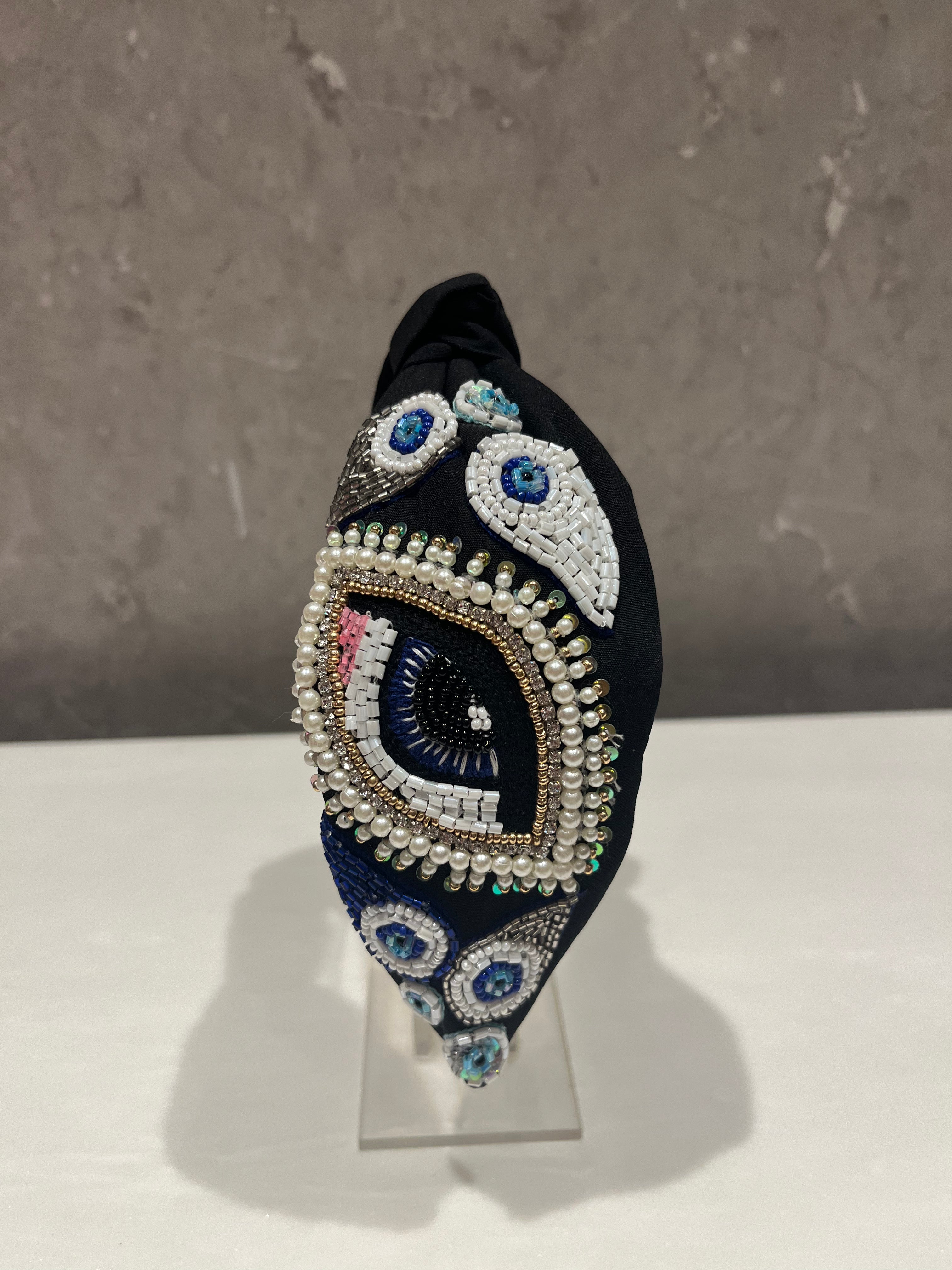 Evil Eye Initial Black Hairband