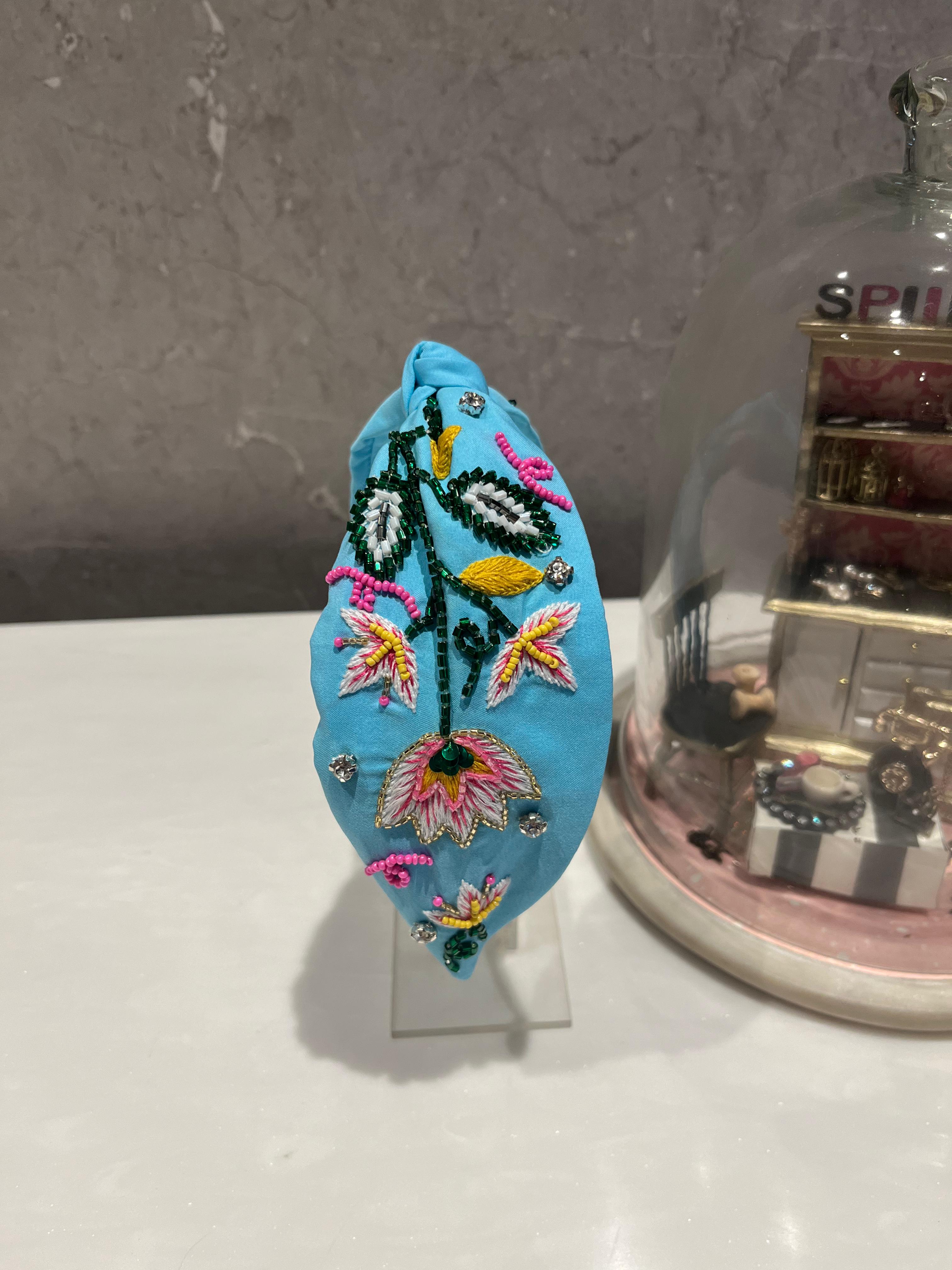 Flowery Blue Turban Hairband