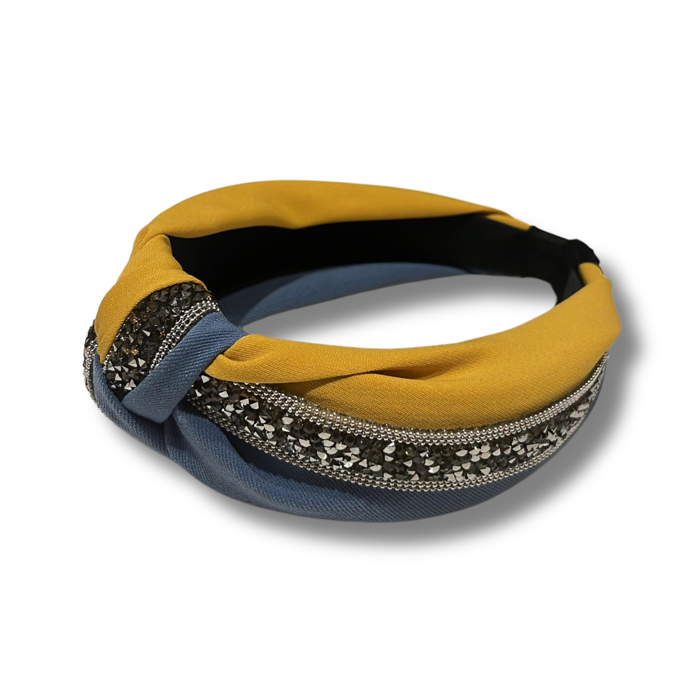 Sparkle And Spot Mustard & Venice Blue Duo Turban Hairband